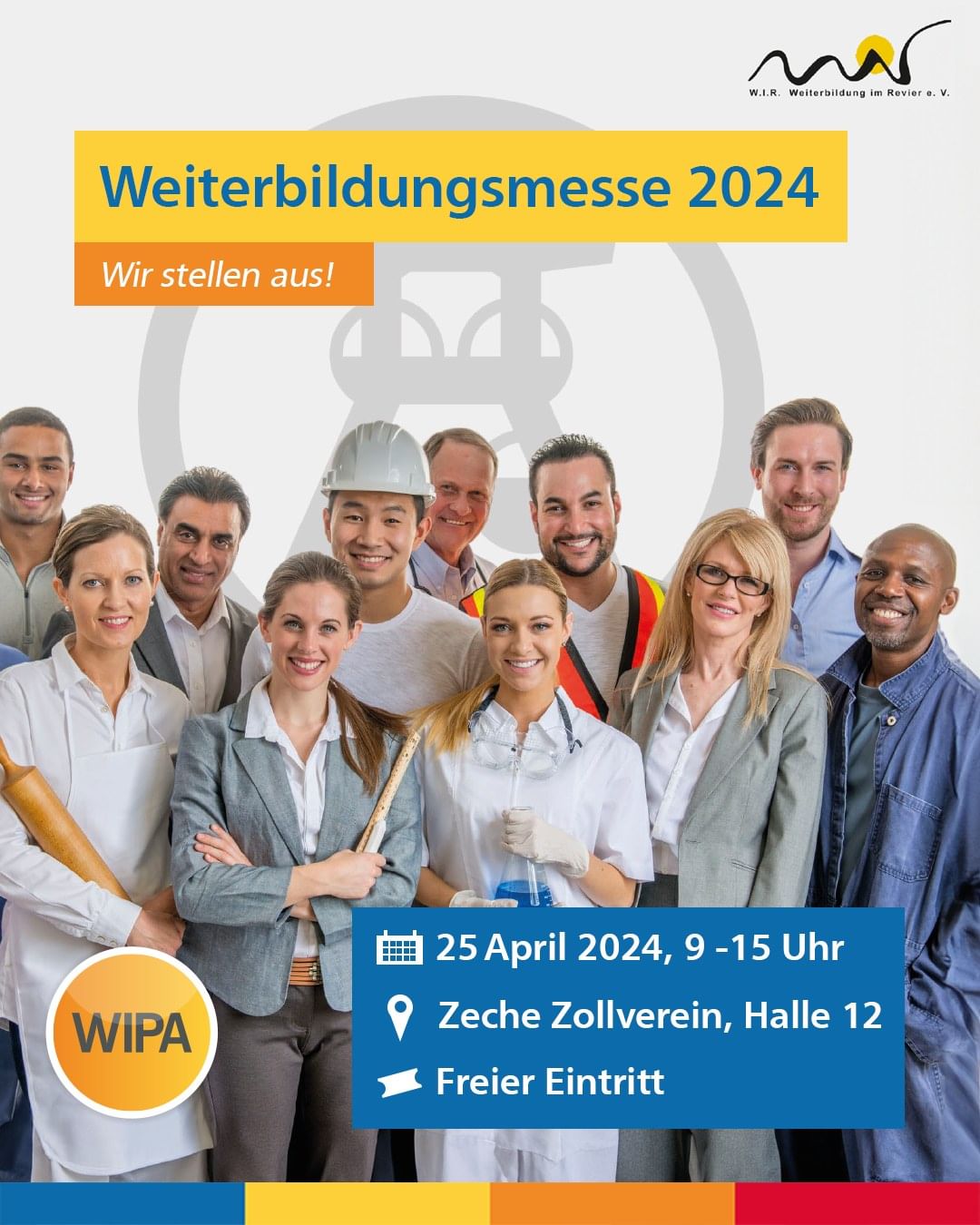 In diesem Jahr findet die beliebte Messe als reine Weiterbildungsmesse am 25. April von 09:00 bis 15:00 Uhr in der Halle 12 auf der Zeche Zollverein statt. Bei der Veranstaltung, die der Verein W.I.R. Weiterbildung im Revier e. V. in Kooperation mit dem JobCenter Essen und der Agentur für Arbeit Essen durchführt, dreht sich erneut alles um das Thema Qualifizierung.